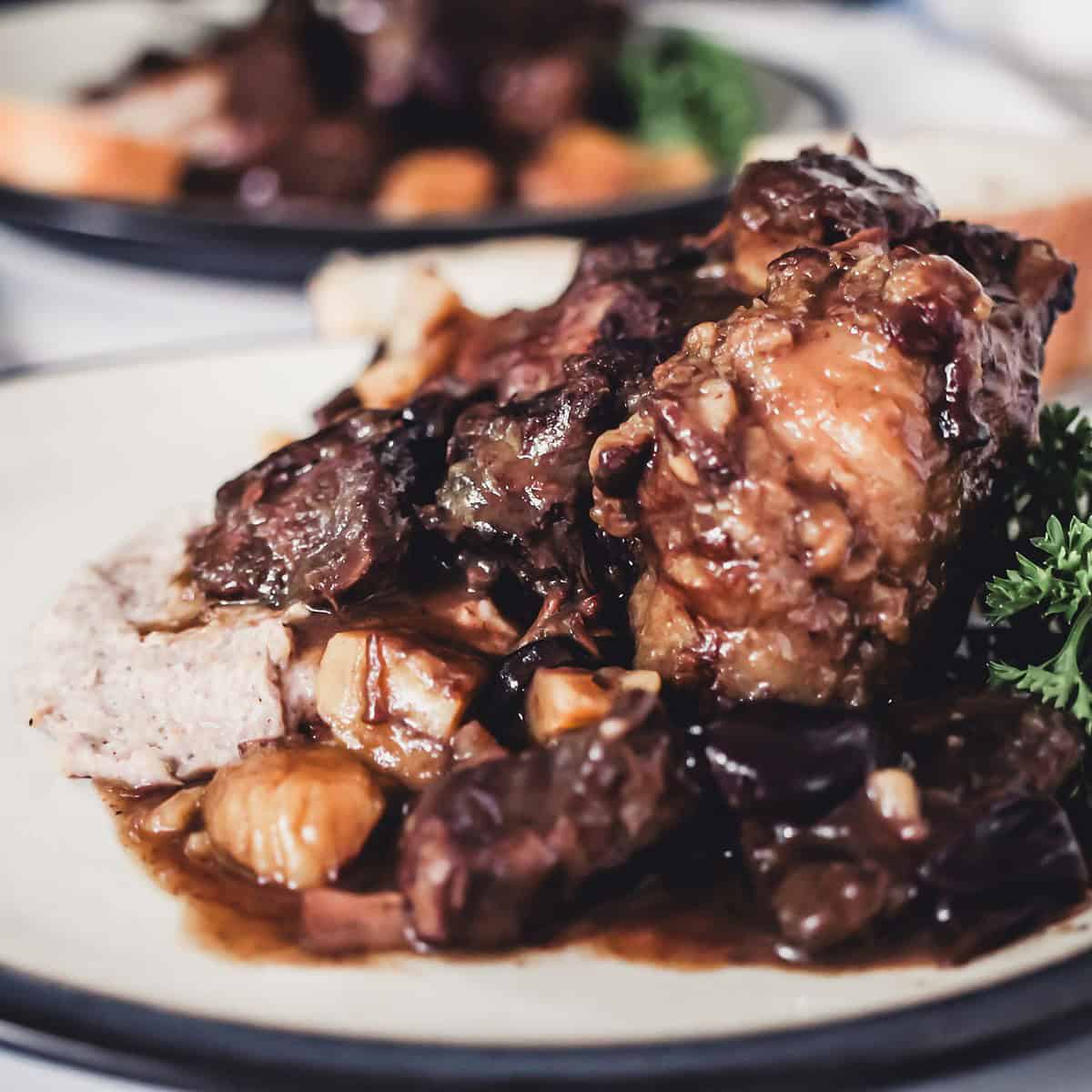 In this recipe the oxtails are first browned, then slow cooked with red wine and stock.
